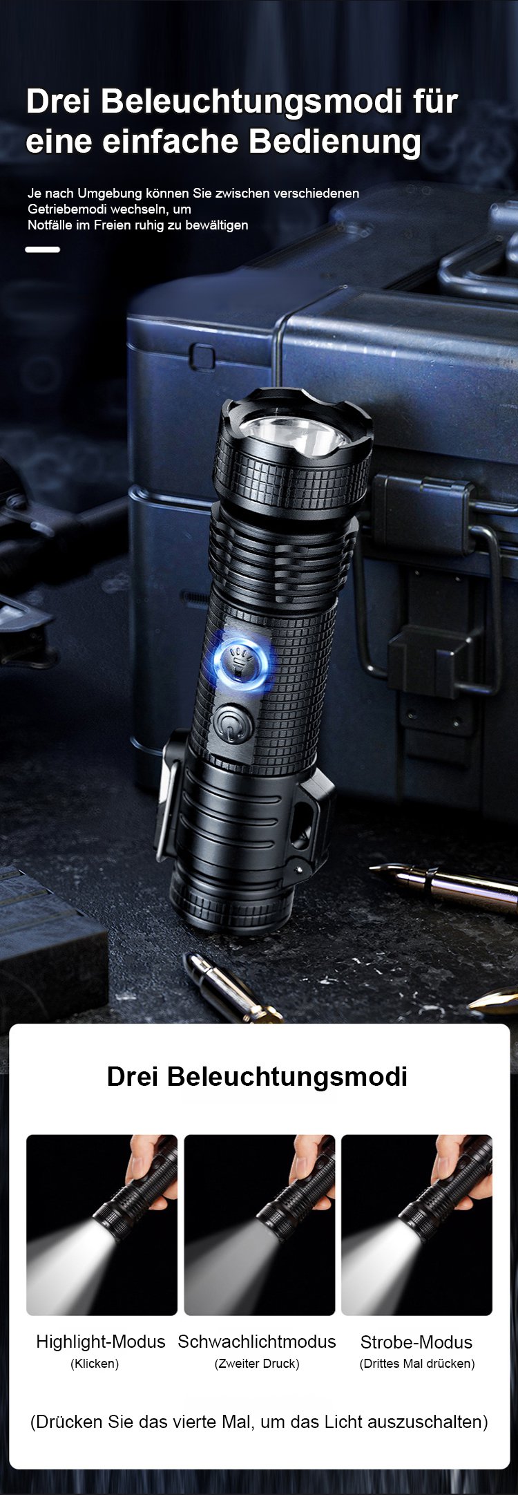 Multifunktionale Taschenlampe mit Elektroschock und Zündung